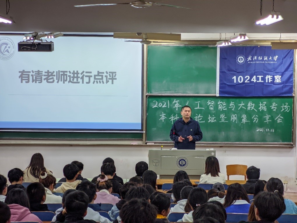 李丽对四位同学的分享和同学们参与论坛的热情与态度给予了充分肯定。并以专业的视角向在座同学们分析了人工智能专业的背景与定位,她强调人工智能已上升至国家战略高度,发展人工智能势在必行,人工智能专业的设立可以推动多学科交叉融合,为传统学科的进一步发展开拓新的思路。她也为同学们讲解了人工智能专业人才培养方案与定位,旨在提升大家的专业自信度,虽然人工智能是学校新开设的专业,但在社会大环境与学校和学院的大力支持下一定会蓬勃发展,未来可期。