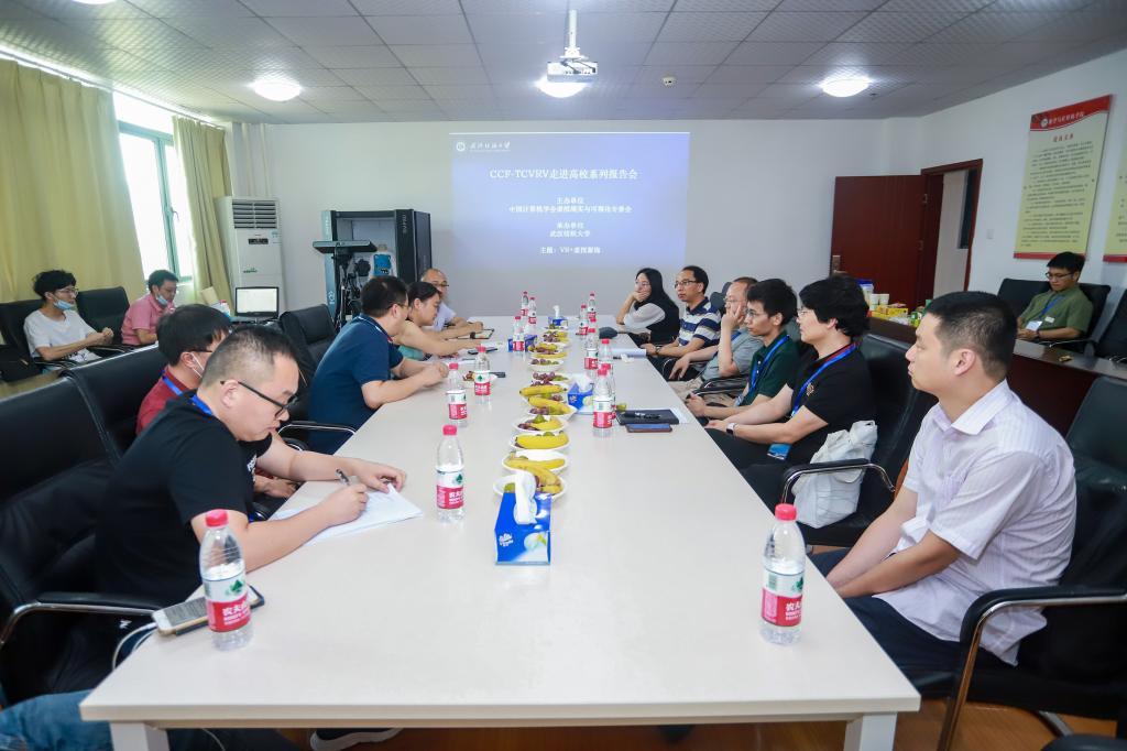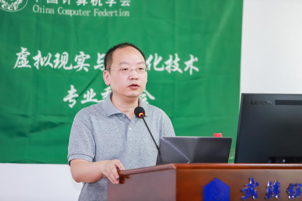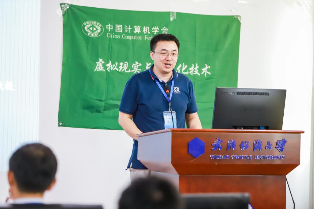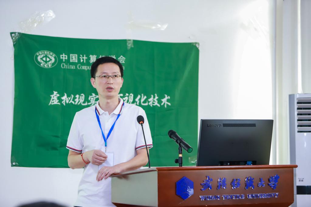 7月24日,由中国计算机学会虚拟现实与可视化技术专委会(CCF-TCVRV)组织,武汉纺织大学开云kaiyun体育官方网站承办的“CCF-TCVRV走进高校”活动在武汉纺织大学阳光校区崇真楼(南楼)举行。来自浙江大学、中山大学、山东大学、武汉纺织大学以及企业界的专家学者围绕着 “VR+虚拟服饰”等主题做了主旨报告和交流。校党委常委、副校长姜明华教授,CCF-TCVRV主任、天津理工大学教授罗训教授致辞。来自武汉大学、湖南大学、中南财经政法大学、武汉纺织大学等院校的百余名师生线上线下聆听了专家报告。