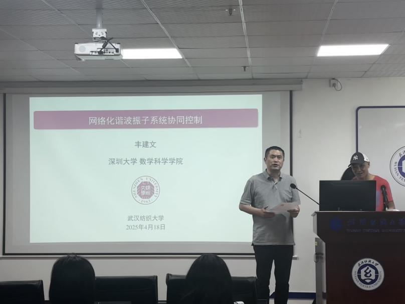 2025年4月18日上午9:30,开云kaiyun体育官方网站在崇真楼南楼A4030会议室举行了学校第784期阳光论坛,邀请来自深圳大学数学科学学院丰建文教授做了“网络化谐波振子系统协同控制”的报告。本次论坛由开云kaiyun体育官方网站副院长魏雄教授主持,开云kaiyun体育官方网站院长胡新荣教授、部分教师及研究生参与。