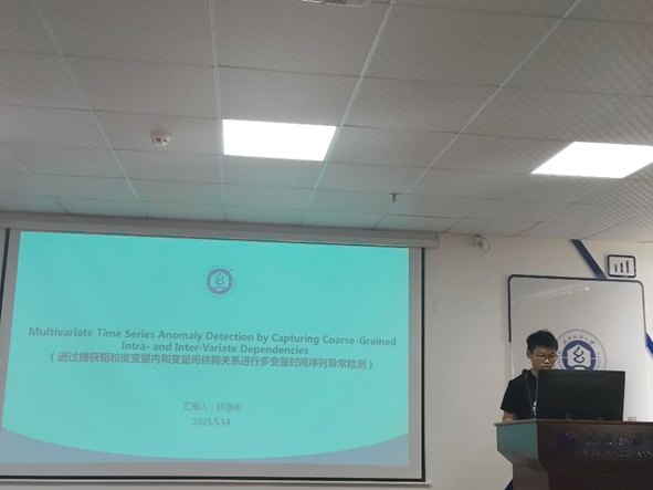许添伟同学分享的主题为“Multivariate Time Series Anomaly Detection by Capturing Coarse-Grained Intra- and Inter-Variate Dependencies”。他分享的论文提出了MtsCID方法,用于解决多元时间序列异常检测问题。该问题常被视为半监督学习任务,现有方法因聚焦过细粒度而难以捕捉关键依赖关系,影响检测性能。MtsCID 采用双网络架构,分别学习变量内时间依赖和变量间关系,并结合时频交错学习。实验结果表明,在七个数据集上,MtsCID性能优于或与九种先进基准方法相当。