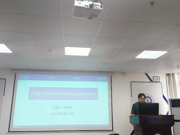 孙子强同学分享的主题为“MuGE: Multiple Granularity Edge Detection”。 针对传统边缘检测方法只能生成单一边缘图,无法适应边缘标注主观性和模糊性的问题,他分享的论文提出了多粒度边缘检测模型MuGE。通过设计边缘粒度网络估计边缘粒度,并将其融入空间和频域的多尺度特征图。实验表明,MuGE 在 BSDS500 和 Multicue 数据集上不仅能生成多样合理的边缘图,性能也达到新的最优水平,为下游任务提供更丰富的边缘信息。