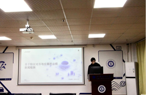 胡振豪同学分享的主题为“Every Lie Has a Grain of Truth: Disentangling Deception from Authentic Content for Fake News Detection”。虚假新闻检测因数字内容的指数级增长仍是一项紧迫挑战,本文提出语义分歧与对齐学习(SDAL)方法,将新闻显式拆解为三个互补组件:捕捉同一新闻主题内通用表征的主题泛化特征、分离具有操纵性内容的内容专属特征,以及整合外部知识的辅助特征。该方法通过检测、分离、一致性与重构四项目标函数,在保留主题语义(现有方法常忽视的关键要素)的同时,最大化误导性内容与真实内容的可分离性,在多个基准数据集上的实证评估表明,SDAL在检测准确率与可解释性方面均持续优于现有最优方法。