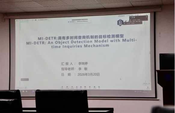 李珠婷同学分享的主题为“MI-DETR: An Object Detection Model with Multi-time Inquirie-Mechanism”。基于对现有DETR类模型中常用的级联解码器架构的分析,本文提出了一种新的解码器架构。级联解码器架构限制了目标查询沿级联方向更新,只能使目标查询从图像特征中学习相对有限的信息。然而,自然场景中的目标检测挑战(例如极小、严重遮挡、与背景混杂且难以区分)要求目标检测模型充分利用图像特征,这促使我们提出一种带有并行多次查询(MI)机制的新解码器架构。MI使目标查询能够学习更全面的信息,MI-DETR在不同的主干网络和训练轮数下,在COCO基准上性能优于所有现有的DETR类模型。