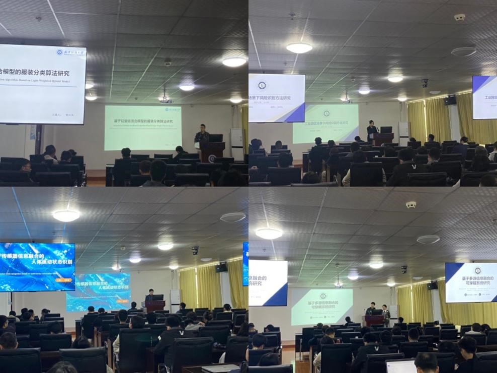 俞晨雨的报告主题是“基于多源信息融合的可穿戴系统研究”,他将多模态传感器、人工智能技术与数字孪生技术相结合,设计并实现了一套基于多源信息融合的可穿戴系统。该系统采用了改进的人体动作识别算法以及多源信息融合轨迹预测算法。他将多个一维信号拼接为二维信息,使用CNN网络提取信号空间特征,Bi-LSTM网络提取时序特征,并使用了空间注意力残差模块,对信号进行全局最大池化以及全局平均池化,将二者与原模块输入相乘,以增强网络对传感器信号因峰值频繁变换而产生的空间特征的敏感度。他还搭建了三维数字孪生展示平台,完成了一套完整的可穿戴硬件、软件系统的研究。