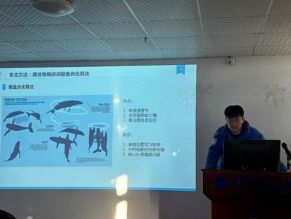 黄河同学分享的主题是“基于混合策略鲸鱼优化算法的云计算任务调度研究”,针对云计算环境中的多目标任务调度问题,他提出了一种基于混合策略改进的鲸鱼优化算法(MSWOA)。在原始WOA的基础上,通过Tent混沌映射初始化鲸鱼个体位置,增加种群多样性;引入自适应概率阈值,平衡算法局部搜索和全局探索能力,融合莱维飞行的随机搜索机制可以提高算法搜索能力,避免陷入局部最优。为了验证MSWOA在云计算环境下任务调度的有效性,他利用CloudSim平台对云计算环境进行了仿真实验,并将MSWOA与NOA、ZOA、OAWOA、MTSWOA在不同任务规模上进行了比较。最后实验结果表明,MSWOA在最大完工时间、系统执行成本与系统平均负载率等方面都表现出更好的性能,在多目标优化方面也取得了显著优势。