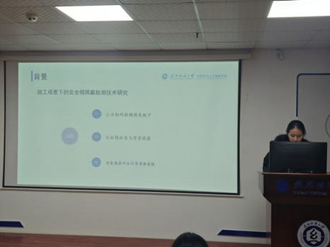 王纯同学分享的主题为“Research on the algorithm of helmet-wearing detection based on the optimized Mobilevit and Centernet”。该研究提出基于 Mobilevit 和 Centernet 的安全帽佩戴检测算法。特征提取阶段用 MobileViT 替代 Resnet50,引入轻量化 CARAFE 上采样算子与反卷积,提高模型的检测速度,针对原始模型小目标检测差和易误检问题,采用 ASFF - FPN 特征融合结构,并引入 ECA 机制。实验表明,该算法比 Centernet 在 mAP@0.5 提升 6.24%,FPS 提升 17.8 帧 /s,兼顾准确率与效率。