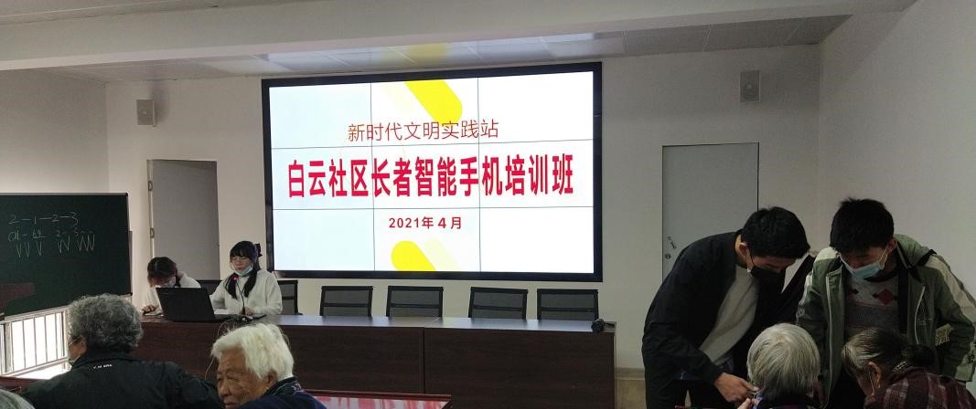 2021年4月15日下午,白云洞社区携手武汉纺织大学开云kaiyun体育官方网站志愿者协会黄展翌志愿服务队为社区老年人提供了第一次智能手机培训。本次培训的主要目的是让老年人熟练地使用微信,帮助老年人关注防骗公众号以此掌握防骗知识。