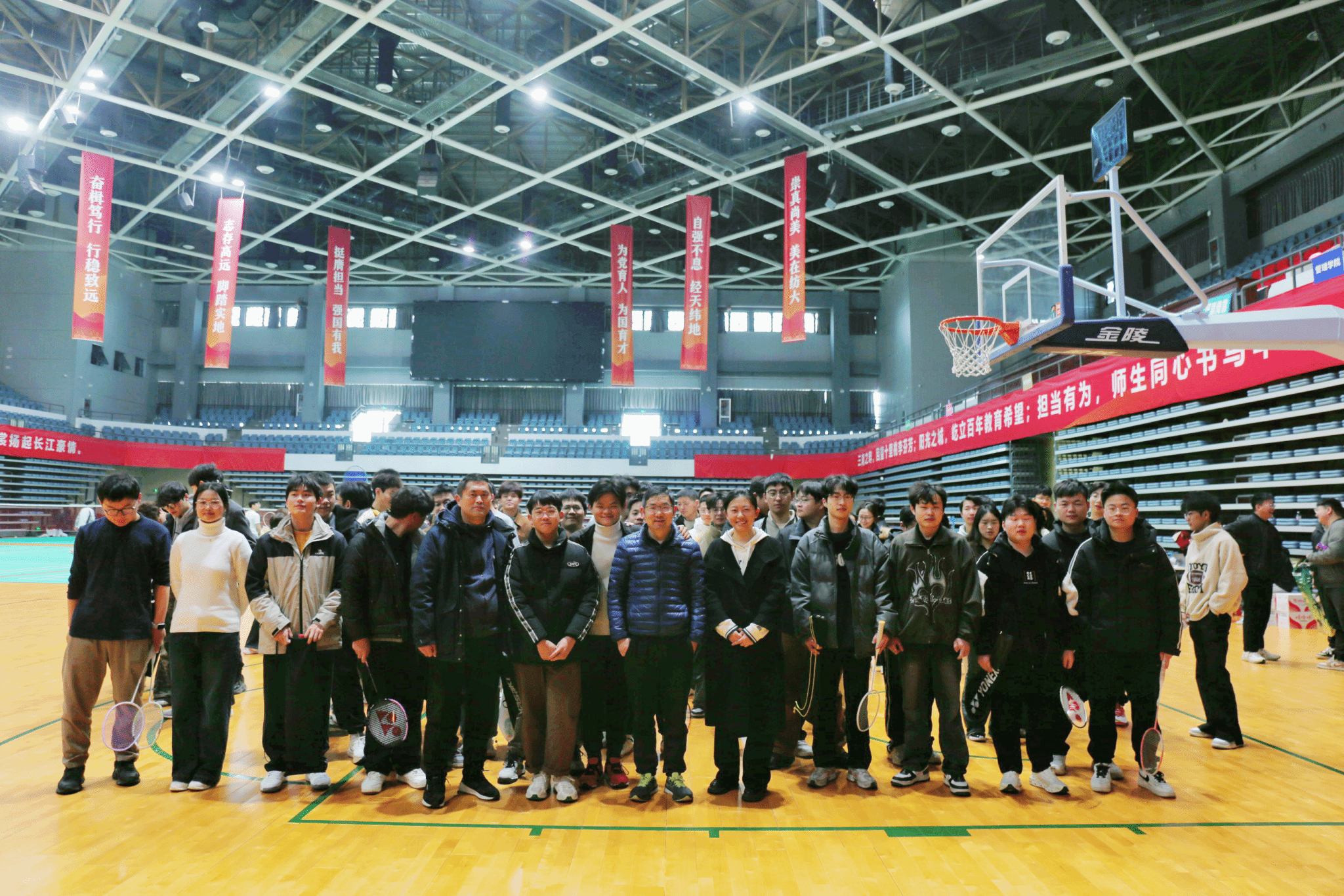 3月6日下午,在体育馆举行第三届“计羽杯”师生羽毛球比赛,开云kaiyun体育官方网站121名研究生齐聚一堂,共同参与本次比赛。比赛期间,学院党委书记晏伟、副院长魏雄、研究生导师朱强和研究生辅导员余梦帆在现场观看比赛,为选手加油助威。