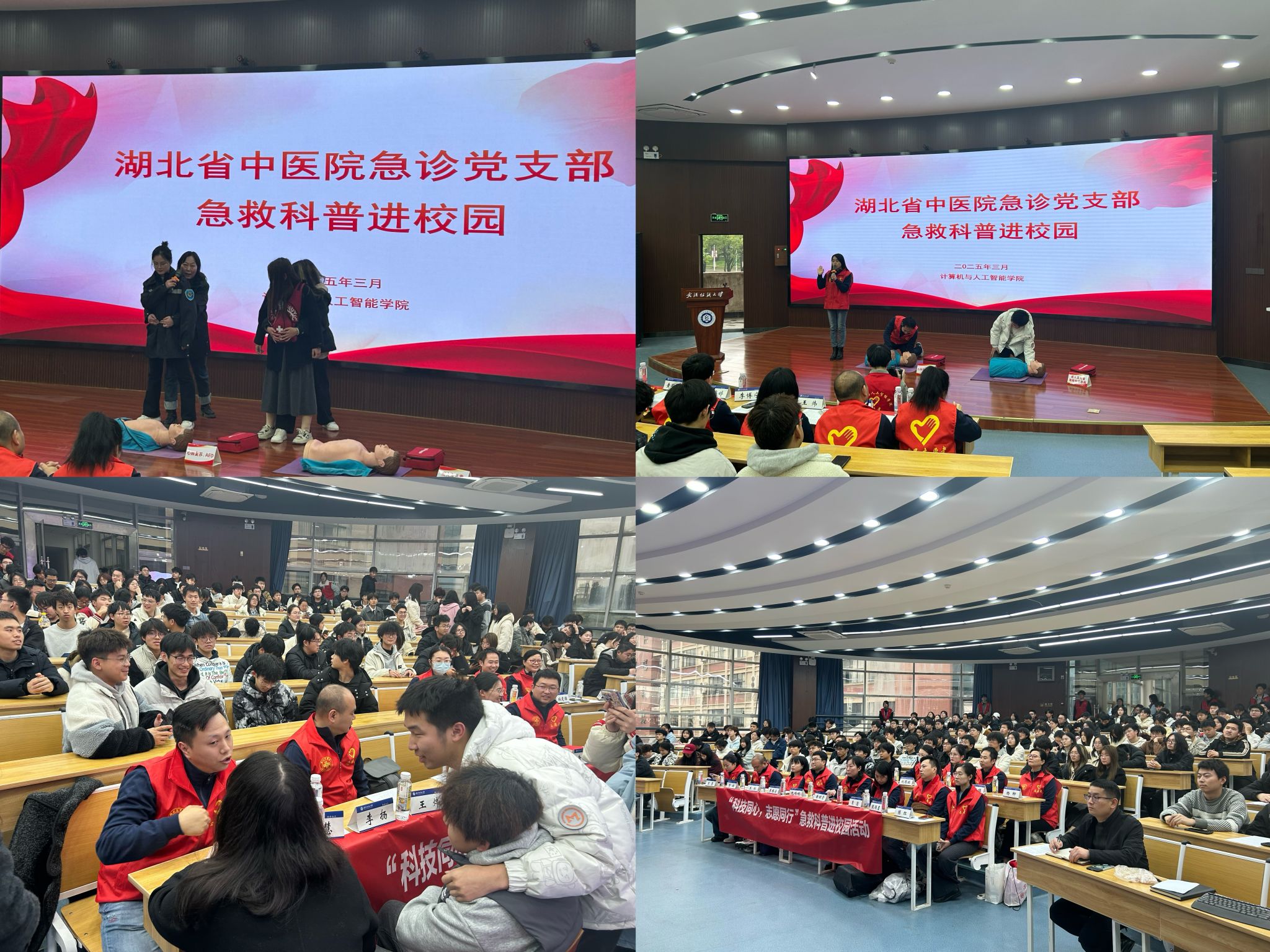 活动在湖北省中医院的宣传片播放中拉开帷幕,师生们对省中医院有了更直观且深入的了解。随后,来自湖北省中医院的12名急救培训专家依次登场,带来精彩纷呈的宣讲与培训内容。内科医生包婷婷凭借丰富的临床经验,通过生动的案例和专业的知识讲解,让师生们清晰地掌握了急性心梗的识别方法以及在紧急时刻的正确急救措施,这对于在校园中及时应对突发心脏疾病至关重要。护理专家陈红则聚焦于心理健康领域,深入剖析抑郁症的识别与预防要点,帮助师生们更好地关注自身和他人的心理健康状态,增强心理调适能力。