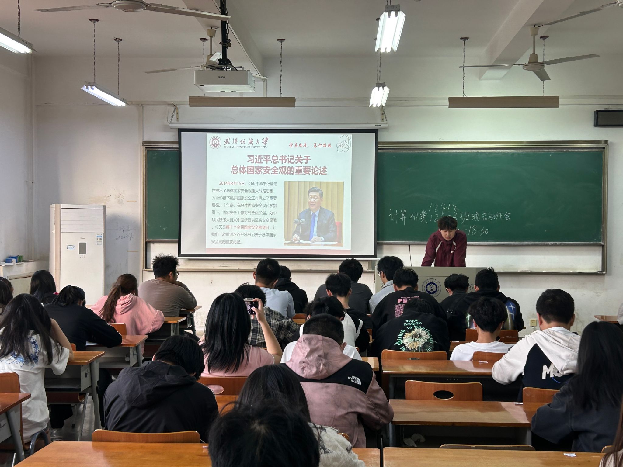 班会开始前,各年级辅导员、班主任清点人数,确认学生周末返校情况,及时落实未报到学生名单及原因并上报学院。班会上,通过视频、故事分享,讲述了“两弹一星”元勋朱光亚、“中国航天之父”钱学森、核物理学家邓稼先等科学家的事迹。他们在艰苦条件下坚持科研、勇攀高峰,为国家富强奉献一生的精神,深深打动了同学们。针对即将来临的来第十个全民国家安全教育日,与会老师与同学们一起学习了国家安全的相关知识,向同学们讲述了国家安全不仅是国家的基石,更与每个人的生活息息相关,共同学习国家安全知识,强化责任意识,用行动守护家园的安宁。班会还着重强调了防范电信诈骗的相关内容,与会老师带领同学们一起学习了《武汉纺织大学开云kaiyun体育官方网站防范电信网络诈骗告知书》,提高同学们的安全防范意识。