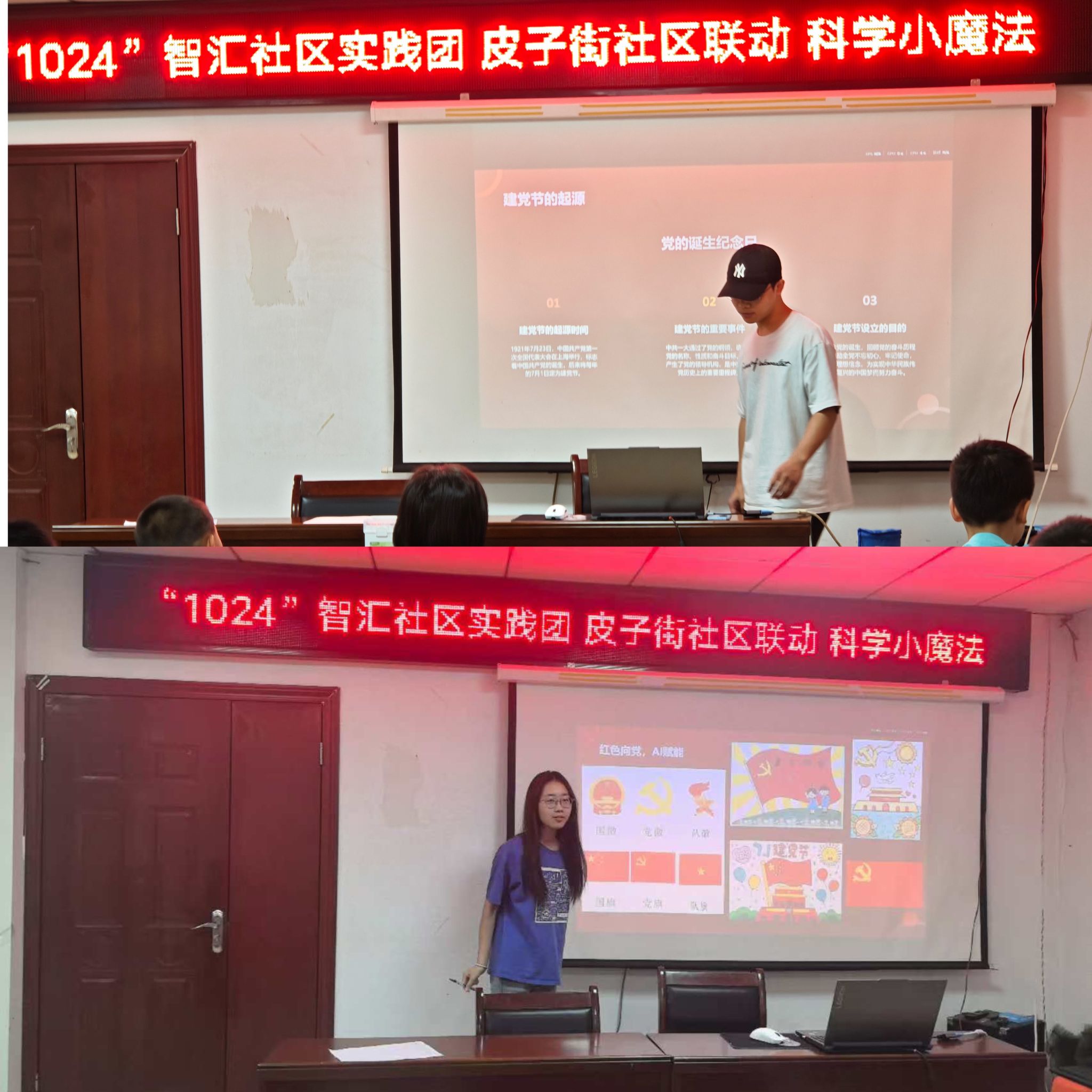 7月1日,武汉纺织大学开云kaiyun体育官方网站“1024”智汇社区实践团与皮子街社区携手,开展了一场别开生面的"红色向党,AI赋能"党史教育活动,为社区小朋友带来了一次难忘的学习体验,也为党的生日献上祝福。