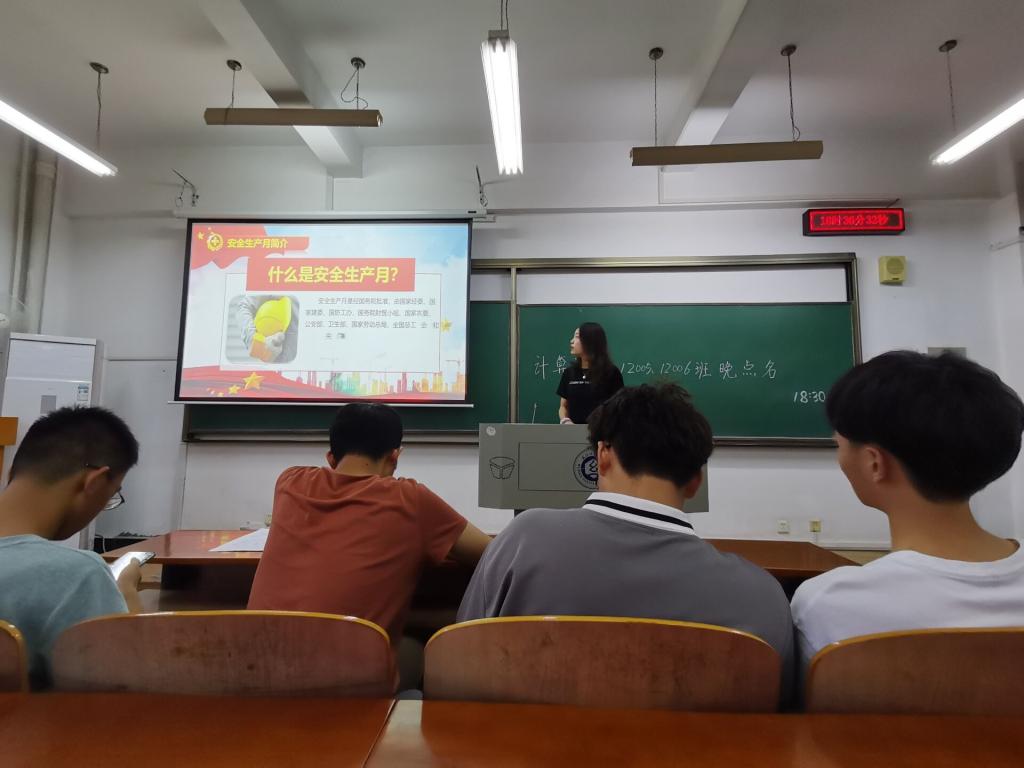 各班长围绕辅导员许超的通知和要求,在班级开展“安全生产月”主题班会,向同学们强调安全的重要性与紧迫性,提醒同学们一定要提高安全意识,加强安全防范,并就个人信息安全、宿舍消防安全、交通安全、饮食安全等方面作了进一步的说明。