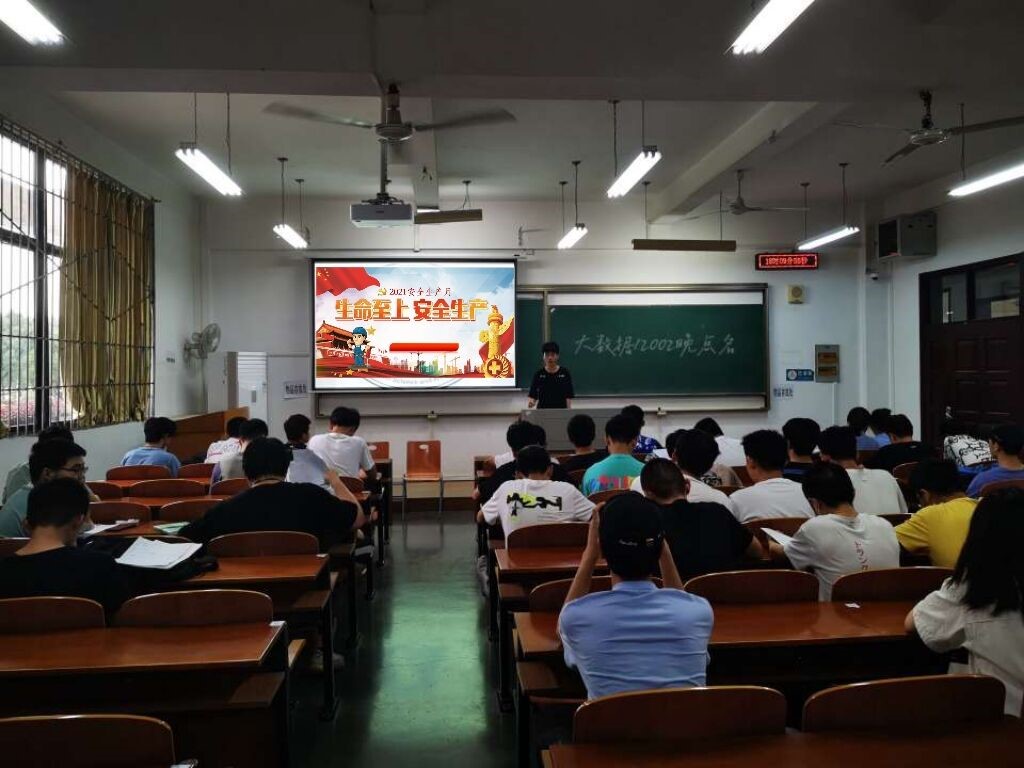 会上,辅导员许超带领大家认识校园安全隐患,其中包括用电安全,盗窃,防骗,交通安全等,介绍了什么是“安全生产月”,要做到落实安全责任,推动安全发展,希望全体学生通过此次班会掌握安全知识,培养“珍爱生命,安全第一”的思想。在大会中,还讲述了我国安全生产管理的方阵,“安全第一,预防为主”,“安全是生产经营活动的基本条件”。