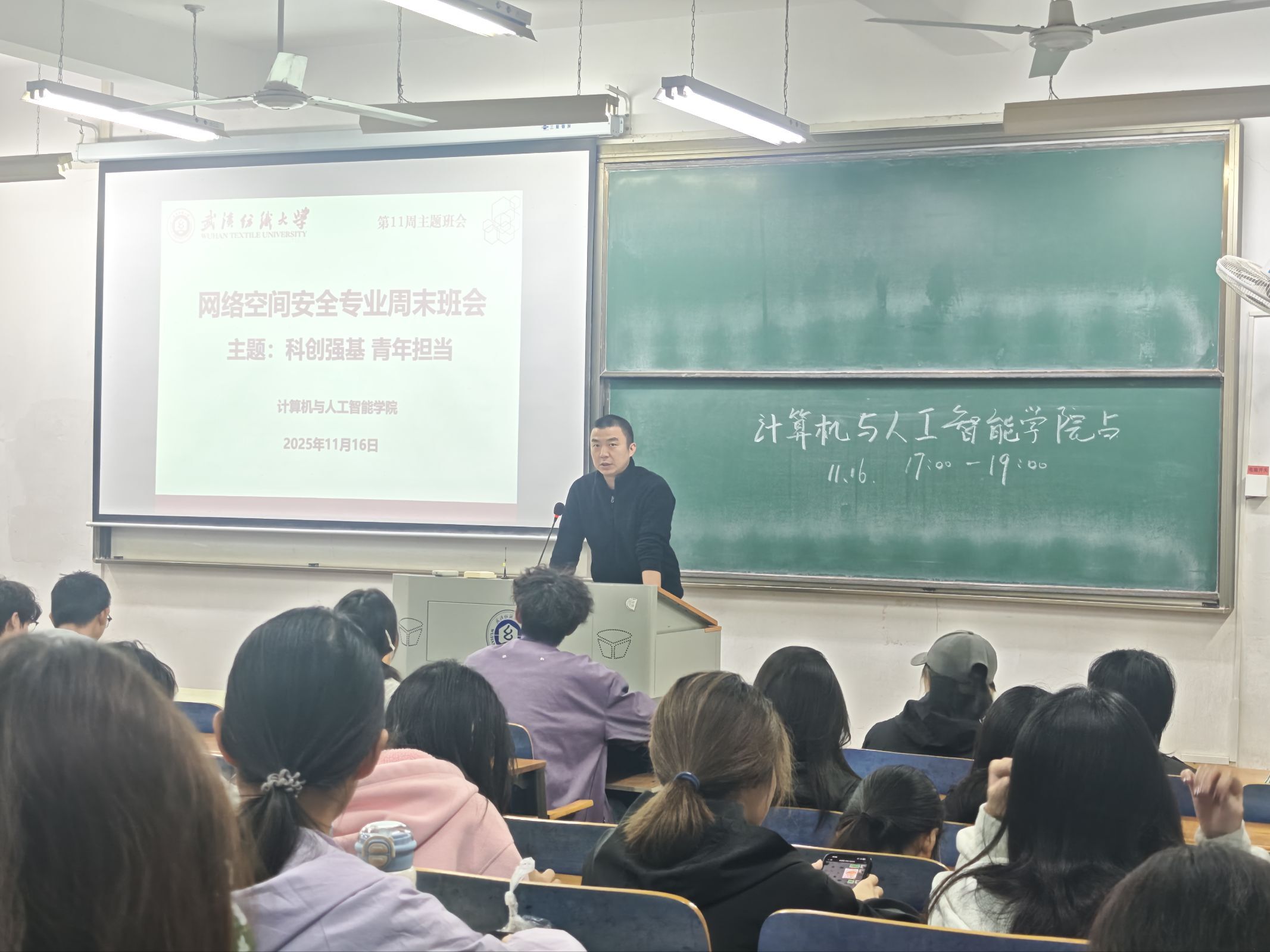 向涛在25级主题班会上对新生提出殷切期望:一是要树立“科创从基础起步”的意识,扎实学好专业知识,打牢理论根基;二是要保持对未知的好奇心与探索欲,主动参与科创社团、实验室项目,在实践中锤炼创新思维;三是要将个人成长与国家需求紧密结合,以“强国有我”的担当,把科创热情转化为解决实际问题的能力,在科技强国建设的征程中贡献青春力量。