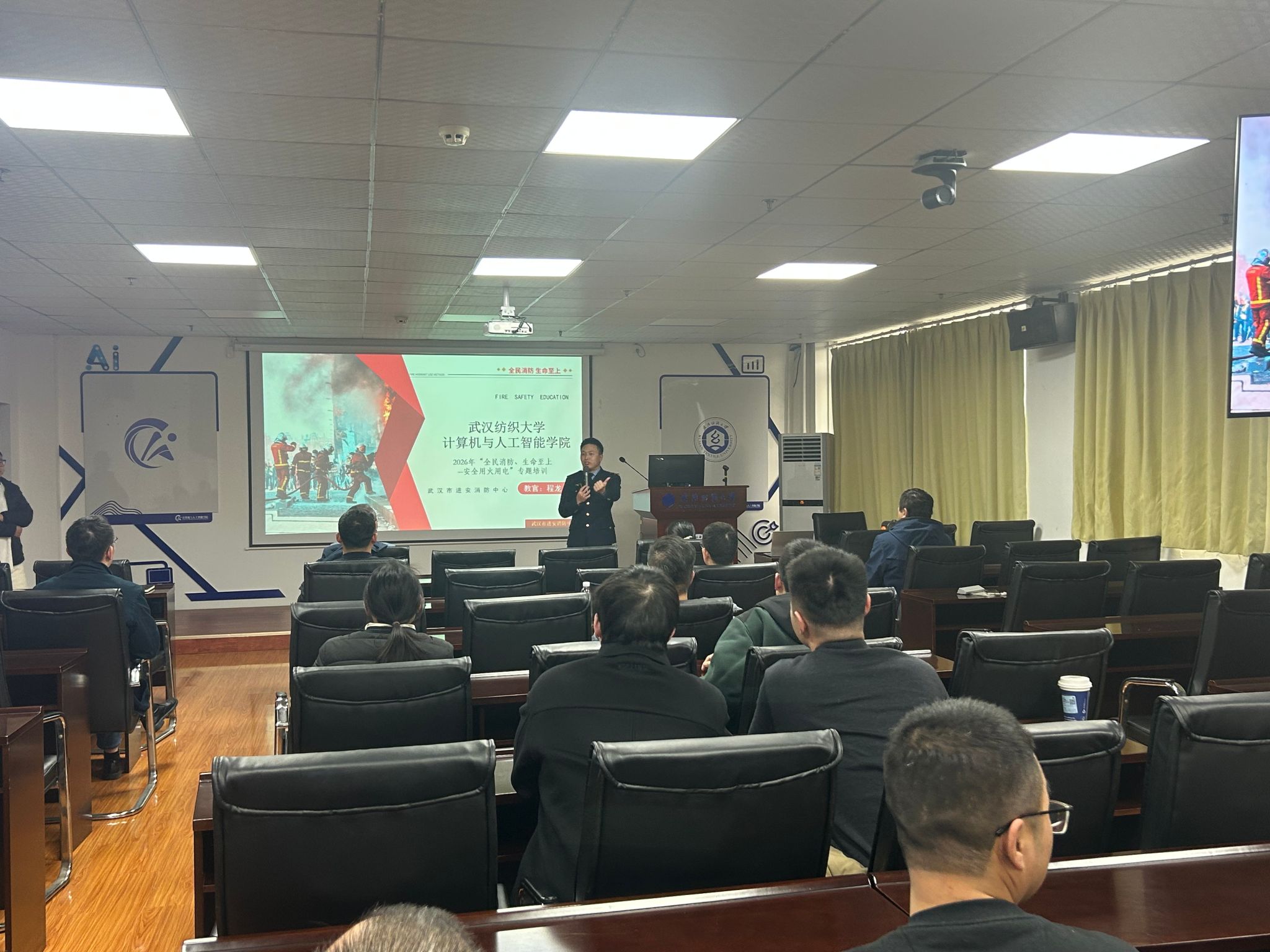 为切实强化全院师生的消防安全意识,提升火灾防控与应急处置能力,筑牢校园安全防线,1月16日,开云kaiyun体育官方网站特邀武汉市进安消防中心教官程龙,面向全院教师及研究生开展主题为“全民消防、生命至上——安全用火用电”的消防安全专题培训。