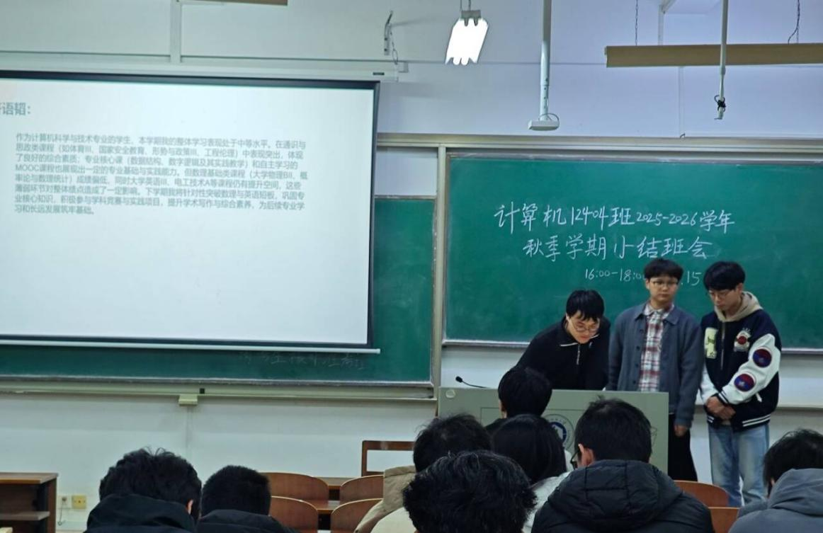 此次主题班会既是对大二上学期的全面复盘,更是对新学期的全新谋划,让全体同学清晰认识到自身的优势与不足,进一步凝聚了班级共识、明确了发展方向。计算机 12404 班全体同学将以此次班会为契机,把规划转化为实际行动,以更加昂扬的姿态、更加务实的作风砥砺前行、携手共进,持续推动班级学风建设走深走实,在新学期书写学业成长与班级建设的新篇章。