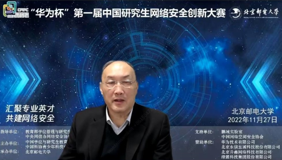 大赛决赛启动仪式采取线上线下相结合的方式在北京邮电大学西土城校区举行。中国学位与研究生教育学会会长、中国工程院院士杨卫,中国研究生网络安全创新大赛专家委员会主任、中国工程院院士方滨兴,教育部学位管理与研究生教育司领导,中央网信办网络安全协调局领导,北京市教委领导,北京邮电大学党委书记吴建伟等受邀出席决赛启动仪式并致辞。启动仪式由副校长王文博主持。