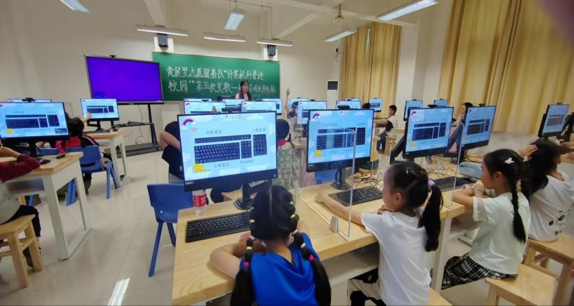 这天,孩子们刚结束激情澎湃的运动会彩排,艳阳下他们带着汗水走进凉爽的机房,迎来他们的第五次计算机科普课。随着教学方法日渐成熟,小老师和孩子们日渐熟悉,这次服务队的教学内容不仅仅是基础的知识,而是更加深入化并对内容适当提高了一些难度。