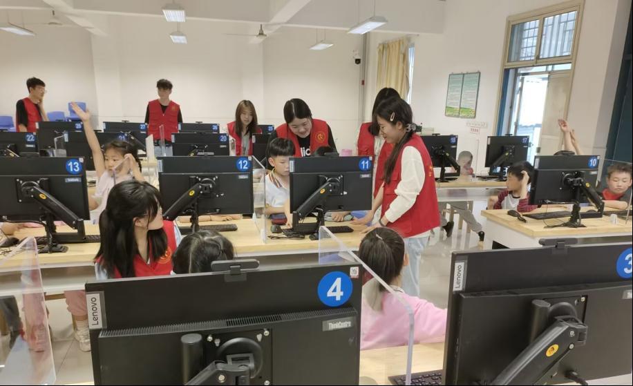 “小嘴巴,不说话;小眼睛,看老师”,志愿者用适合小朋友特征的口号来规整课堂纪律。褪去稚嫩与羞涩,服务队成员已经成功转换角色,能胜任志愿者小老师的角色了。志愿者小老师饱满的精神风貌、灵活的应变能力、孩子们认真的求知眼神、出色的课堂作业完成情况,都彰显着“计算机科普进校园”活动的优秀成果。既用科技知识浇灌了祖国娇嫩的花朵,又对新一批祖国的栋梁进行了考验与磨炼。