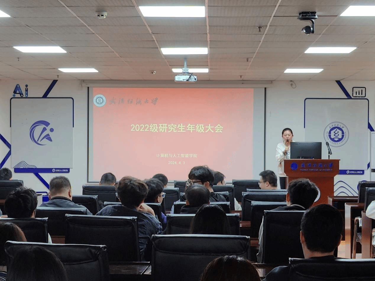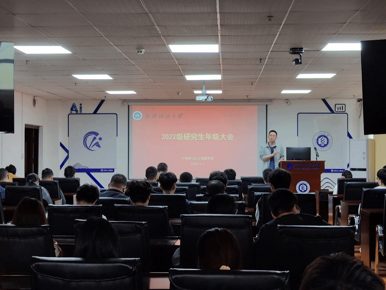 彭涛院长总结研究生现阶段的学习困难和就业形势,对研一、研二学生提出认清形势、早做规划、抓紧时间等相关要求。