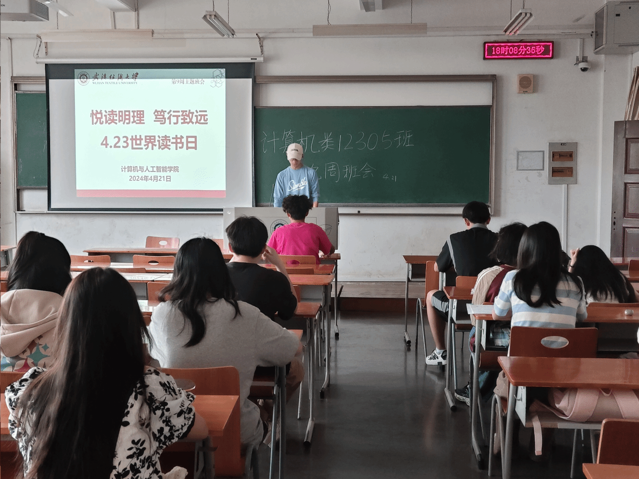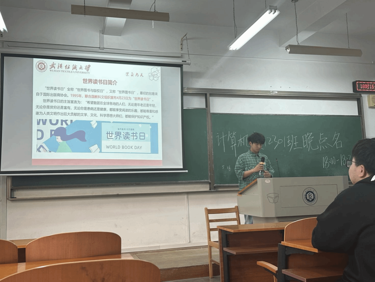 班会开始前,辅导员清点学生的参会情况,对未参会学生逐一排查确认,确保学生安全。班会上,班主任首先向同学们介绍了世界读书日的由来和意义,强调了阅读对于个人成长的重要性。随后,通过一系列生动有趣的案例和故事,班主任深入浅出地阐述了阅读的益处,如丰富内心世界、提高思维能力、拓宽知识视野等。同时,介绍校图书馆举办“书藏日月,艺蕴星辰”第二十一届读书月活动,呼吁同学们踊跃参加,体会书中的黄金岁月。