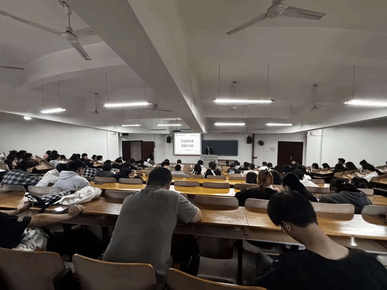 学院党委副书记、各年级辅导员、班主任利用周末晚班会开展了“热血铸军魂、报国正当时”征兵政策宣讲活动,活动主要围绕应征条件、入伍流程、大学生参军特别优惠政策、军营生活、征兵防诈骗六个方面进行宣传介绍。