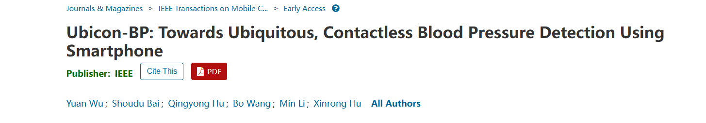 成果二:《Ubicon-BP: Towards Ubiquitous, Contactless Blood Pressure Detection Using Smartphone》