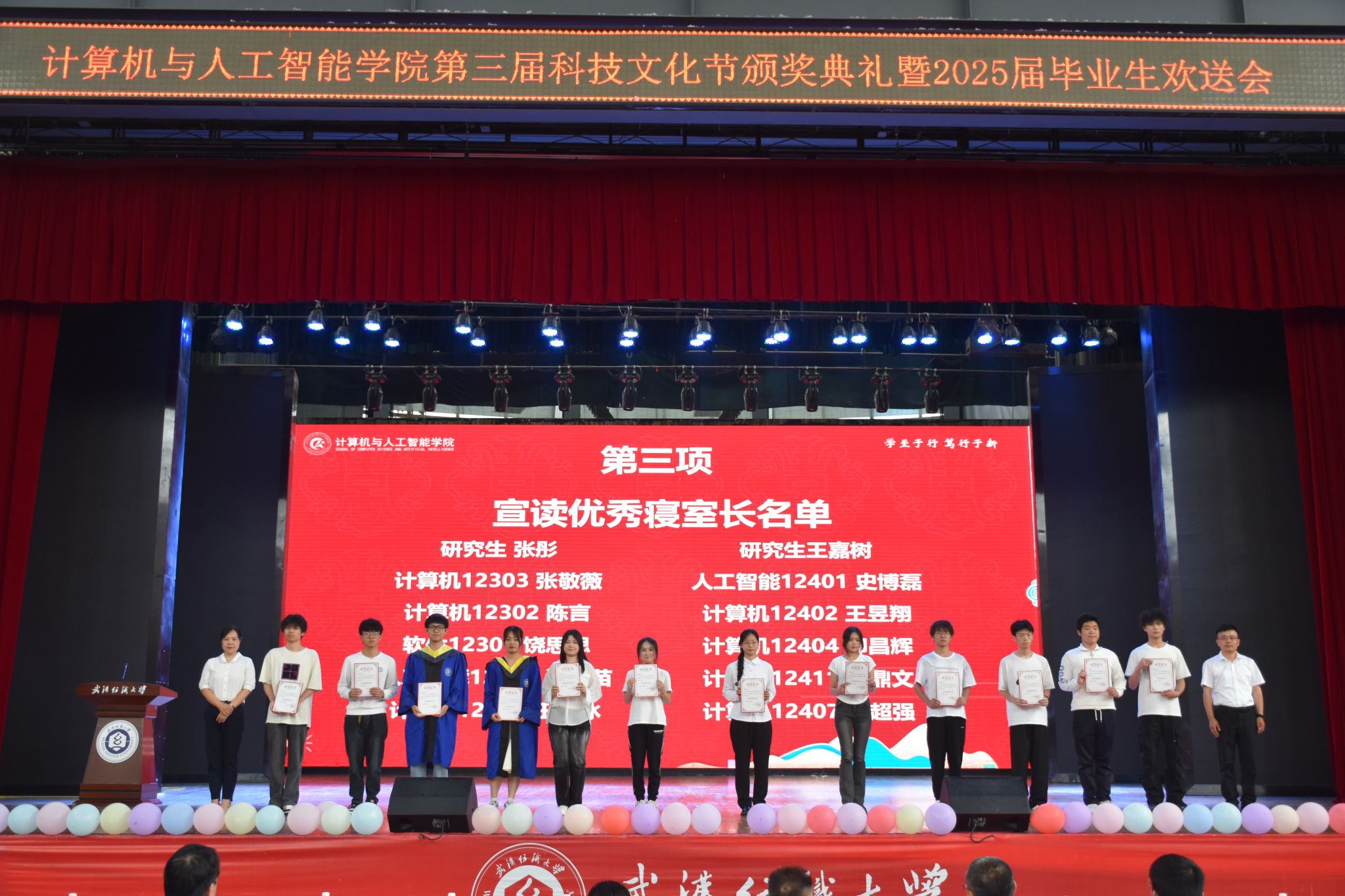 6月12日,开云kaiyun体育官方网站在大学生活动中心演播厅举办了“筑梦计智 逐梦未来”为主题的第三届科技文化节颁奖典礼暨 2025届毕业生欢送会。校党委副书记、副校长罗锦银,学工部、研工部、校团委、教务处、招就处、校友处等部门负责人,全体院领导、教职工,本科生、研究生、毕业生家长代表、校友代表等1000余人齐聚一堂,共同见证这一难忘时刻。