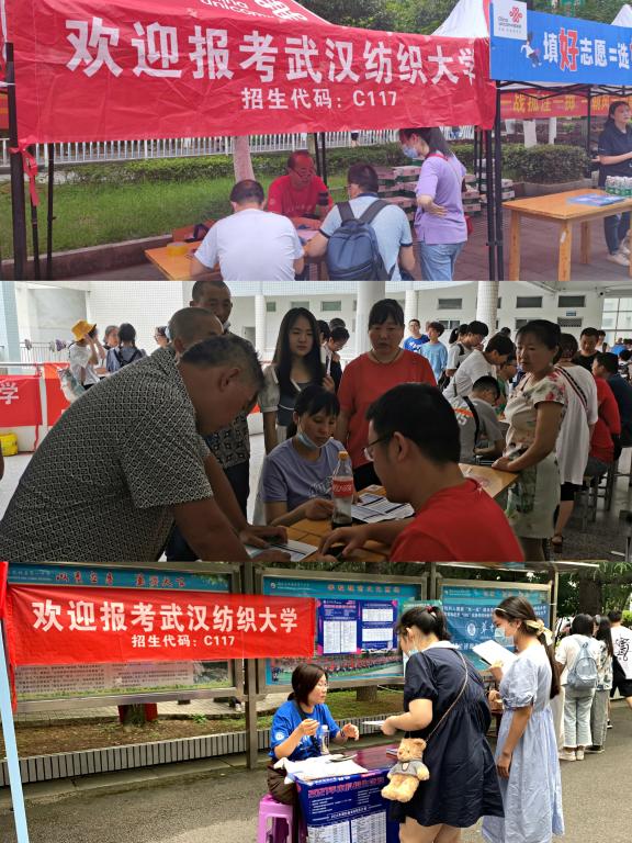 准备工作就绪后,老师们不仅分组分批次地参加了恩施专场、武汉、汉川、咸宁、孝感地区由学校统一安排咨询点的宣传,还冒着暴雨、不畏艰苦远赴建始、利川、巴东等优质生源基地进行招生宣传,向前往咨询的家长、学生积极宣传武汉纺织大学,解疑答惑,指导志愿填报,有效地促进了学校与学生的交流沟通,为招生工作打下了坚实的基础。