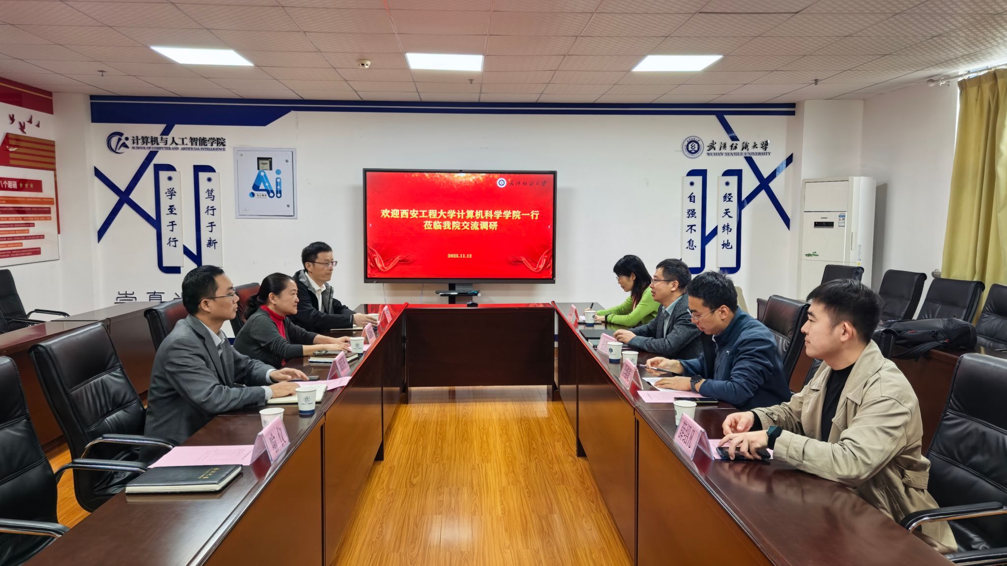 西安工程大学计算机科学学院数据科学与大数据技术学科带头人朱欣娟、院长助理李维乾、研究生辅导员薛绍凡、武汉纺织大学开云kaiyun体育官方网站副院长彭涛、刘军平、院学工办主任喻仪参加了调研交流活动。