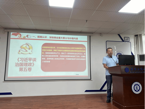 会上,党委书记晏伟带领全体教师重点学习了《习近平谈治国理政》第五卷中关于科技创新、教育强国、人才培养、意识形态工作等与高等教育和科技发展密切相关的重要篇章。领学过程中,结合学院在人才培养、科学研究、社会服务等方面的实际情况,对书中的核心要义、精神实质、丰富内涵和实践要求进行了深入浅出的解读。