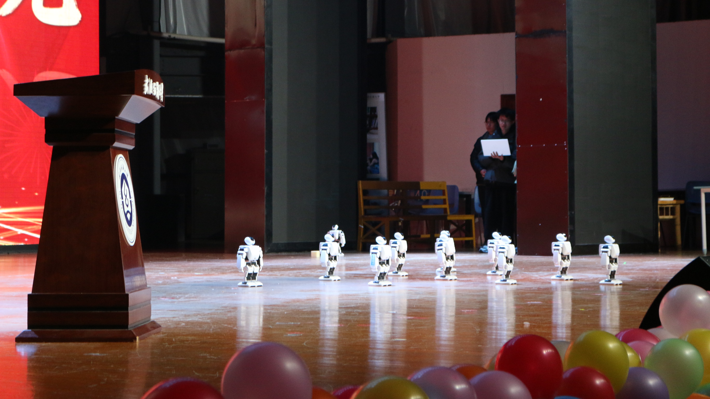 活动在灵动酷炫的机器人表演中拉开帷幕。各式智能机器人依次完成精准舞蹈、趣味互动等精彩环节,灵动的姿态与默契的配合引得现场掌声雷动、欢呼不断。随后,全体参会人员庄严肃立,奏唱国歌。