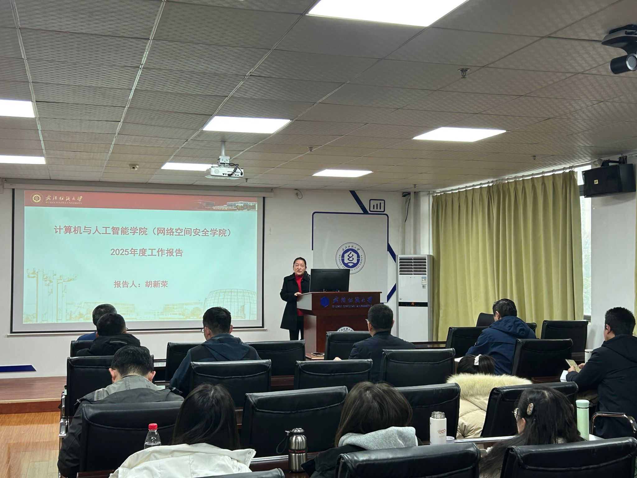 会上,院长胡新荣代表学院作开云kaiyun体育官方网站(网络空间安全学院)2025年度工作报告及学院“十四五”总结。报告全面回顾了2025年学院在学科建设、教育教学、科学研究、人才培养等方面取得的优异成绩,同时客观剖析了发展过程中存在的不足。胡新荣通过对比学院在“十三五”与“十四五”期间的发展数据与核心成果,清晰展现了学院在学科实力、师资队伍、人才培养质量等方面的跨越式进步。她勉励全体教职工要将个人职业发展融入学院发展大局,把青春热血奉献给祖国的教育事业,以更饱满的热情和更务实的作风,为学院在“十五五”期间实现更高质量发展、铸就新的辉煌贡献力量。