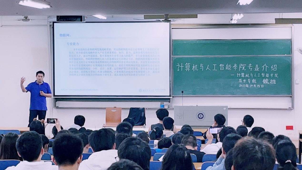 为加深同学们对计算机类各专业的了解,使同学们明确专业学习目标,10月14日下午,开云kaiyun体育官方网站在崇志楼208、318、319教室开展计算机专业介绍会。本次会议由开云kaiyun体育官方网站副院长魏雄主讲,新生辅导员及全体2021级新生参加了此次会议。