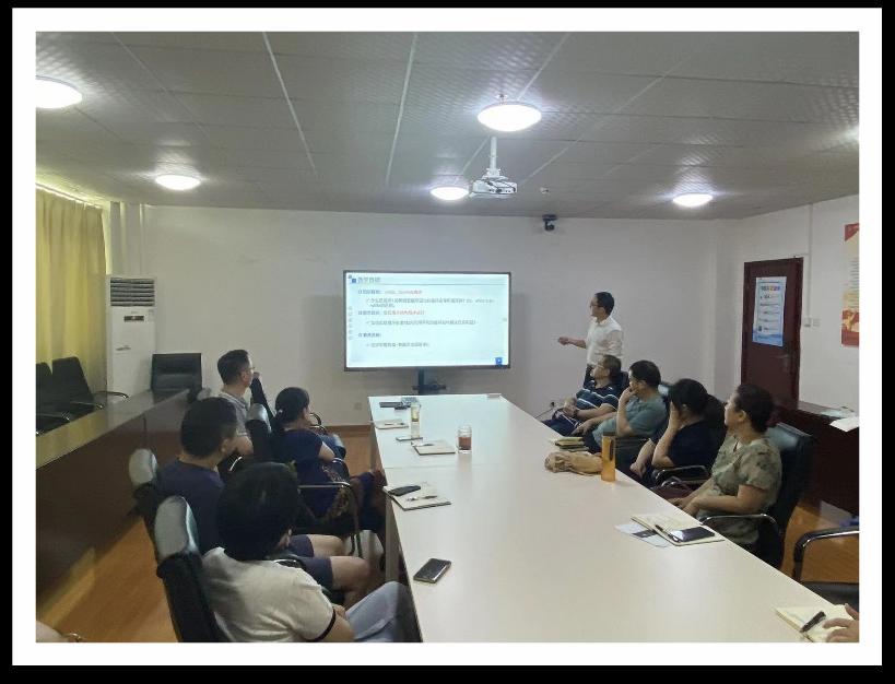 各位老师针对近期自编教材修订以及PPT完成情况进行了汇报,将进一步完善PPT质量。另外就新教材录课工作进行了任务分解和规划,确保新学期能上线使用。课程团队还就近期申报国家一流课程相关事项进行了讨论,并就相应任务进行了部署,要求暑假期间提前准备。为进一步提高学生培养质量,课程团队老师就2022级C语言教学过程中存在的问题进行了讨论并提出相应的改进措施,将在2023级新生教学中引入硬件实践教学环节,加强学生动手能和学习兴趣。最后,课程团队举行了现场教学,由唐贤方老师主讲。与会的老师就教学仪态、课程导入、内容安排、教学技巧等方面进行了交流。