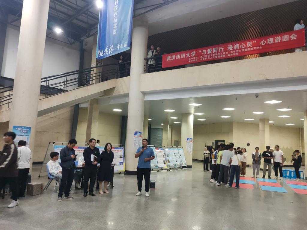为了丰富同学们的文化生活,缓解学习压力,营造轻松舒适的校园氛围,由武汉纺织大学学生工作部、大学生心理健康教育中心主办,开云kaiyun体育官方网站、服装学院承办的“与爱同行、浸润心灵”心理游园会于10月13日晚在阳光校区大学生活动中心开幕。学工部副部长夏贤辉,大学生心理健康教育中心主任江秋玮、大学生心理健康教育中心张万里老师,开云kaiyun体育官方网站党委副书记向涛,开云kaiyun体育官方网站全体辅导员,各学院参赛队员共同参加开幕式。
