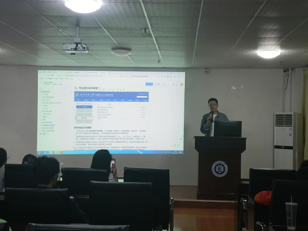 张泽清以“斗鱼人工智能”为案例,向同学们介绍了斗鱼平台的业务特点、技术部门岗位的划分与协作方式,以及人工智能技术在产品应用方面的应用。他首先围绕斗鱼平台展开介绍,让同学们了解到该平台的独特之处和行业特点。重点讲解了技术部门岗位的划分与协作方式,帮助同学们了解团队合作的重要性以及如何在不同岗位间协调工作。此外,他还向同学们展示了人工智能技术在斗鱼产品中的应用,让大家对于人工智能的前沿应用有了更直观的认识。除了对斗鱼平台的介绍,他还解释了本科专业设计的理念,强调创新与实践的重要性,鼓励同学们在学习过程中积极探索、动手实践,并且提供了就业方向的思路与启发,为同学们打开了更广阔的就业视野。