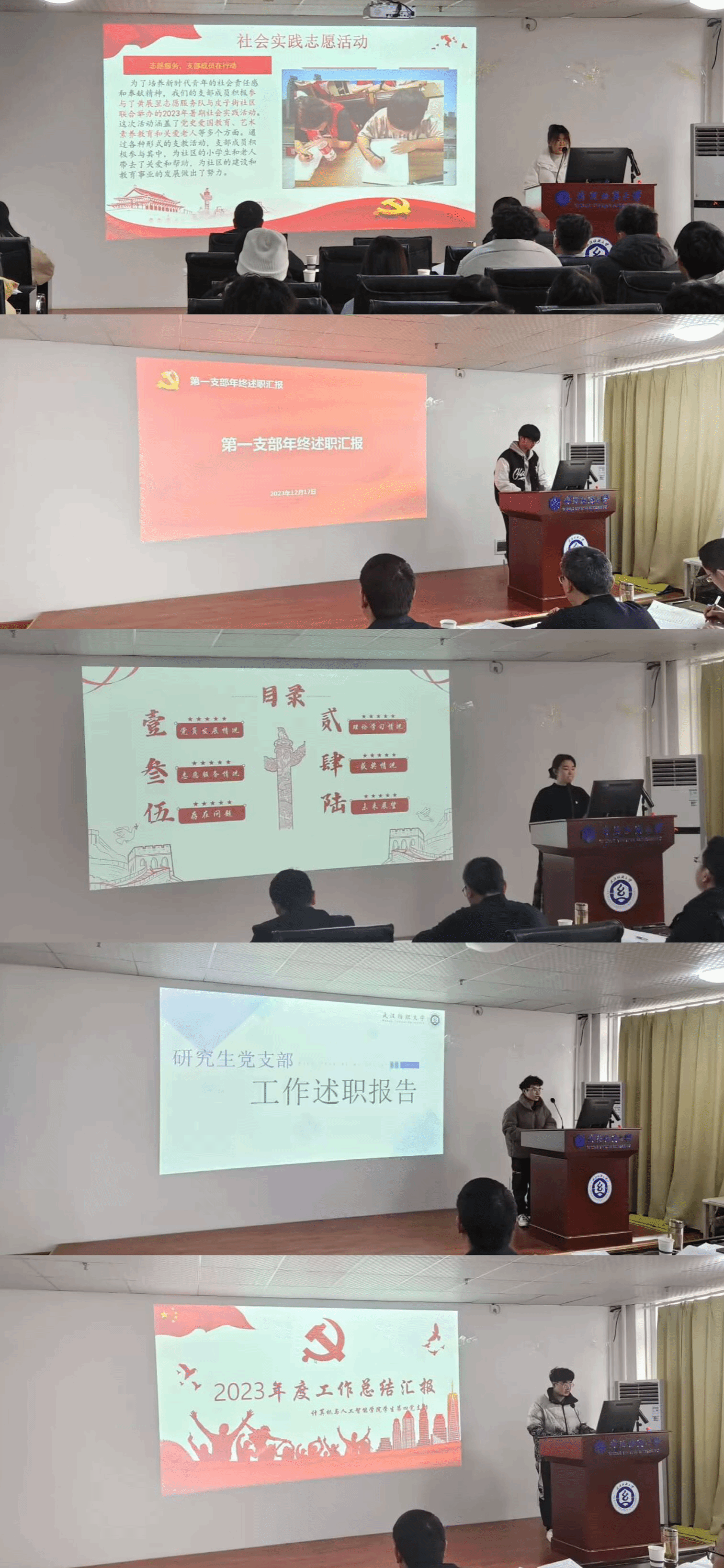 各学生党支部述职完成后,彭涛进行了述职点评,充分肯定了各学生支部书记在过去一年的辛勤付出,一年来各学生党支部和学生党员开展的党建工作取得了令人满意的成绩,高标准完成全年党员发展任务、高质量务实推进主题教育。同时,他指出了各支部在日常工作中应以实践为基准,敢想敢做,不断对党员教育和理论学习进行创新。