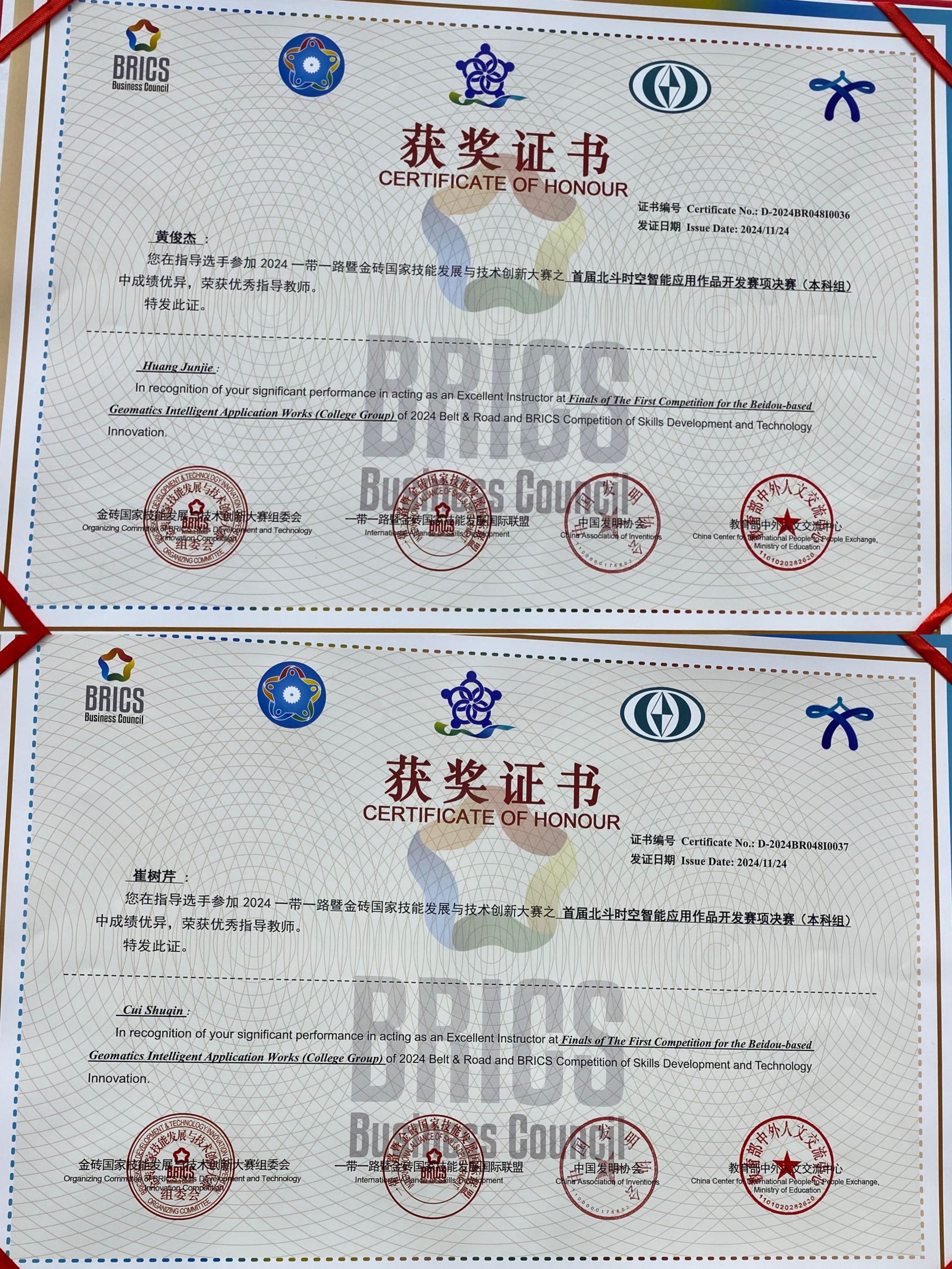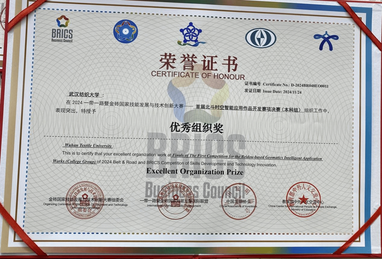 近日,由金砖国家工商理事会中方理事会、一带一路暨金砖国家技能发展国际联盟、中国科协“一带一路”暨金砖国家技能发展与技术创新培训中心主办的“2024一带一路暨金砖国家技能发展与技术创新大赛首届北斗时空智能应用作品开发赛项”决赛在武汉圆满落幕。开云kaiyun体育官方网站学子在此次比赛中表现优异,荣获国家级二等奖,为学校争光添彩。