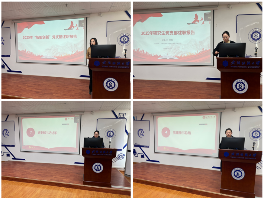 在三月份主题党日活动中,张娜等四位同志带领党员集中学习习近平总书记重要文章,传达学习全国两会精神和党的二十届四中全会精神,并围绕树立和践行正确政绩观学习教育开展专题学习与交流。组织生活会环节有序推进。各研究生党支部书记分别围绕支部年度工作情况进行述职汇报,随后学生党员代表依次进行个人自评与相互评议。最后,党建秘书余梦帆对本次组织生活会作总结,充分肯定会议成效并对后续支部建设提出具体要求。