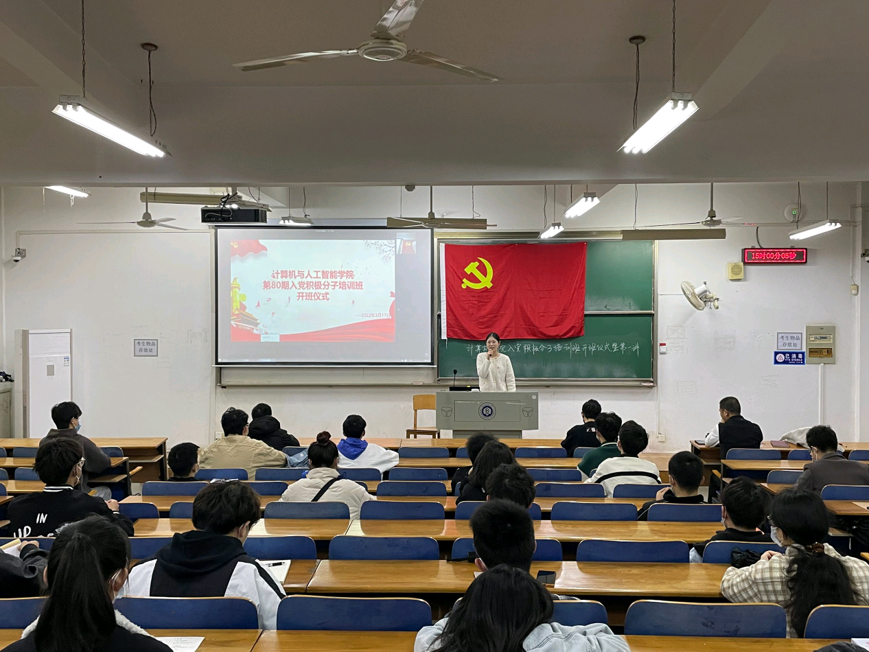 20级辅导员喻仪宣布第80期入党积极分子党课学习正式开班,并由上一期培训班优秀结业学员宣读了党课规章制度。